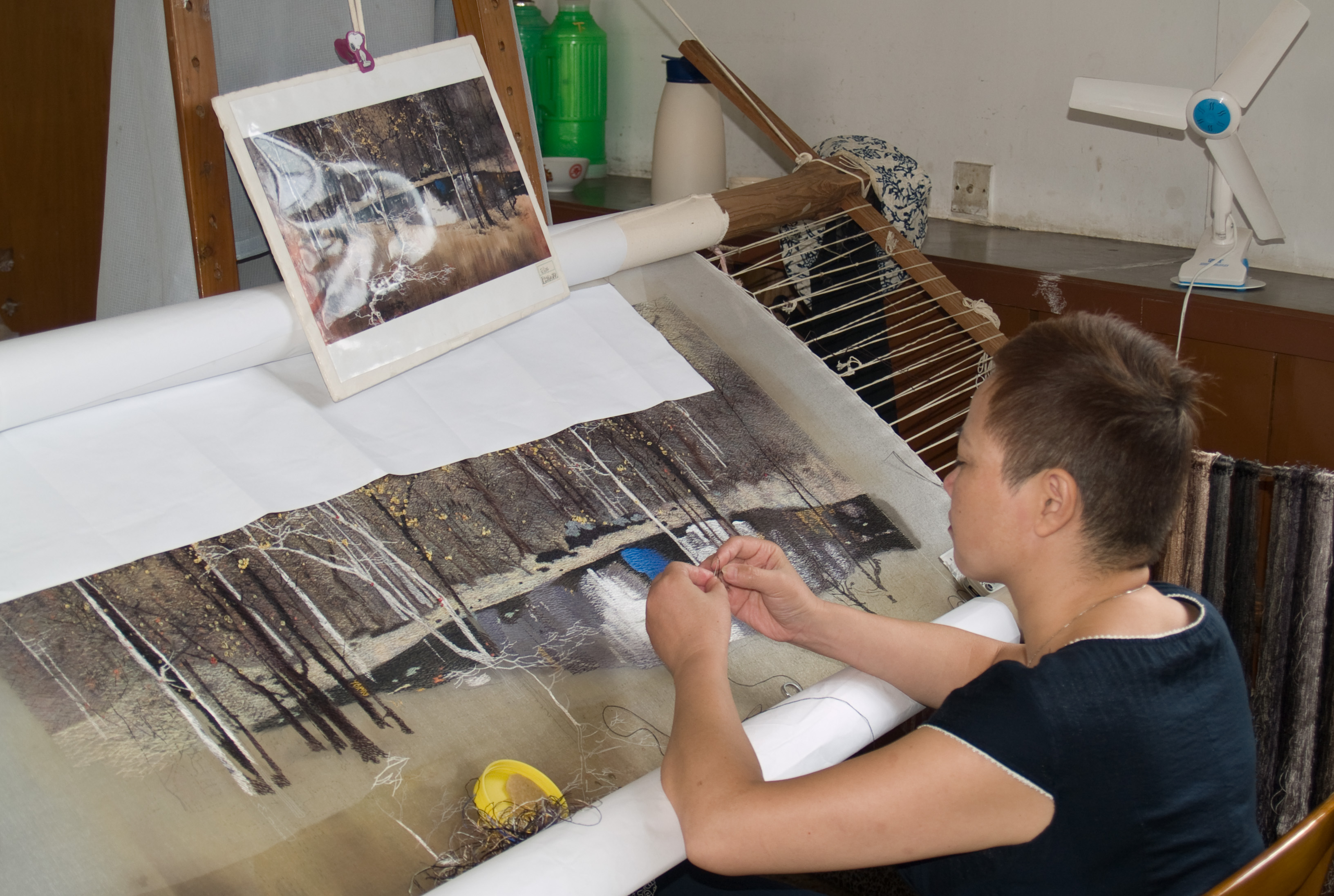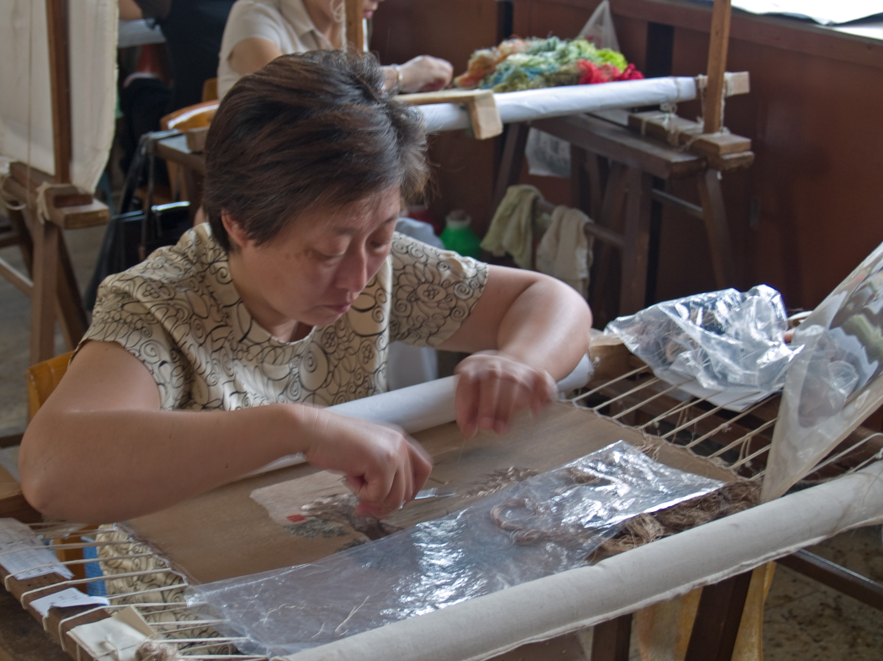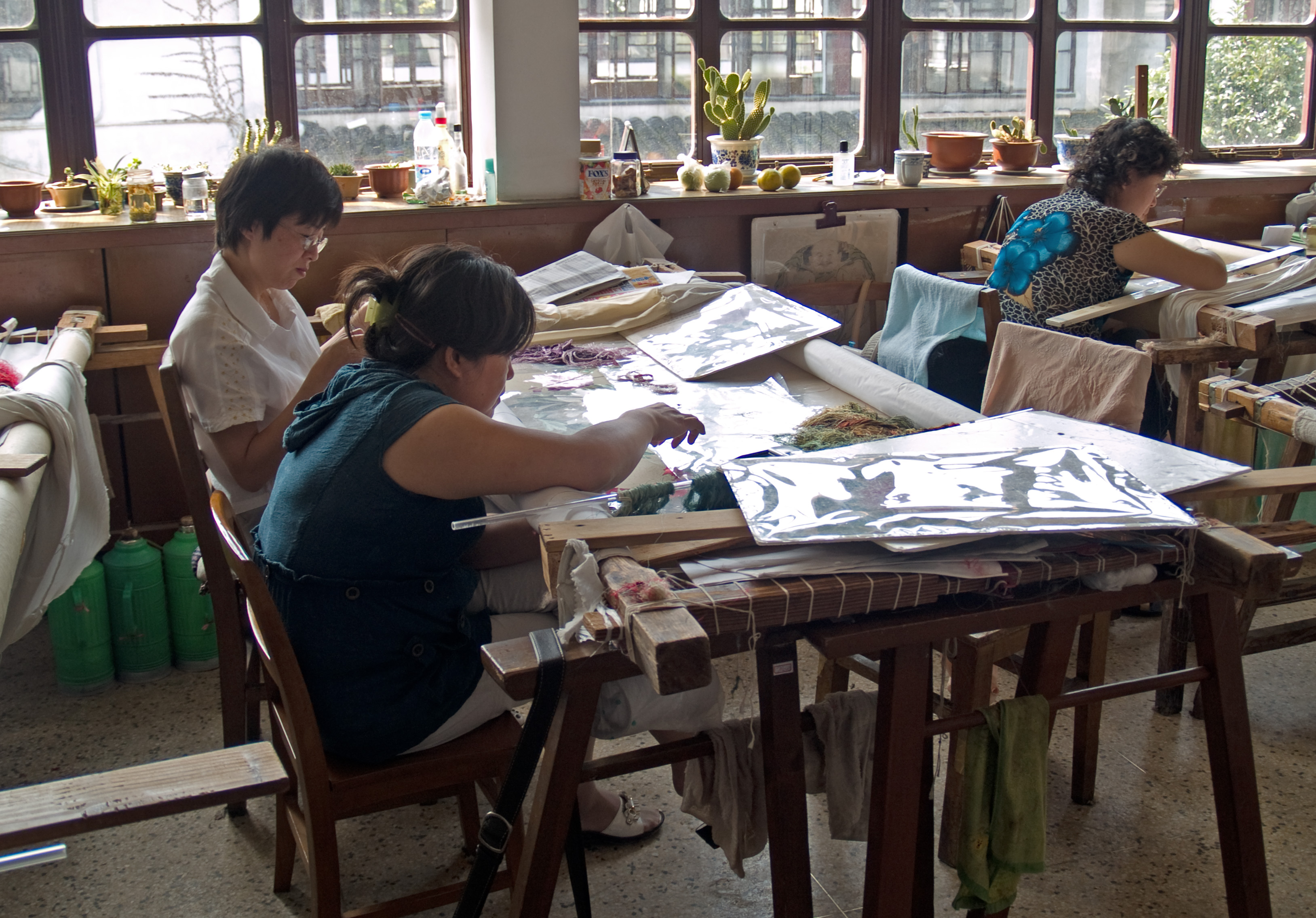 Silk embroidery [ Home ] [ Up ] [ The Master of Nets garden ] [ Silk production ] [ The Lingering Garden ] [ Silk embroidery ] [ Canal cruise ]