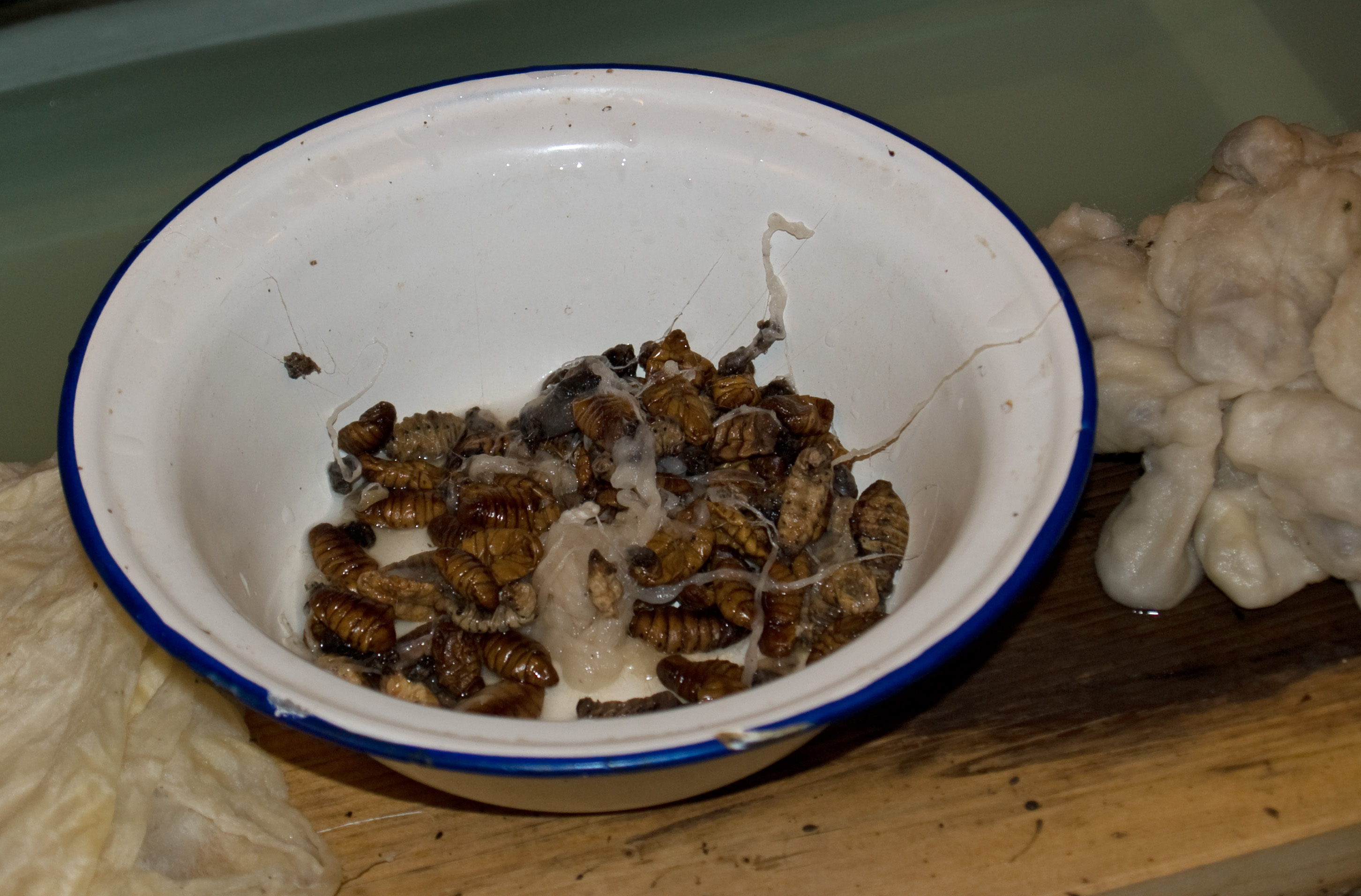 Old way of boiling the pupae to prepare the cocoons